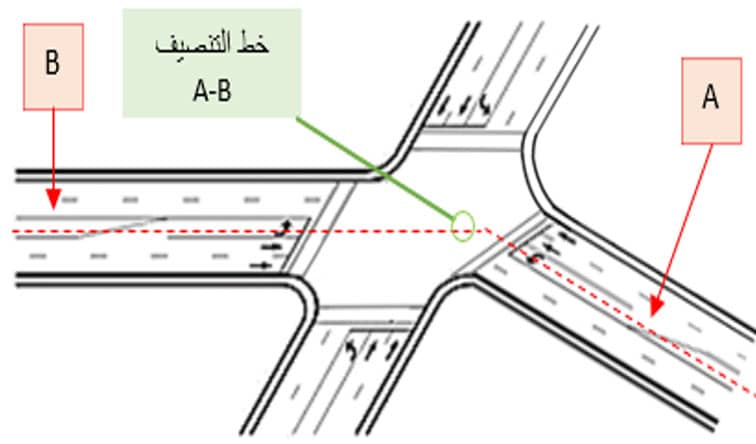 الطرق المتقابلة تشترك في خط تنصيف مستقيم شكل 1-1
