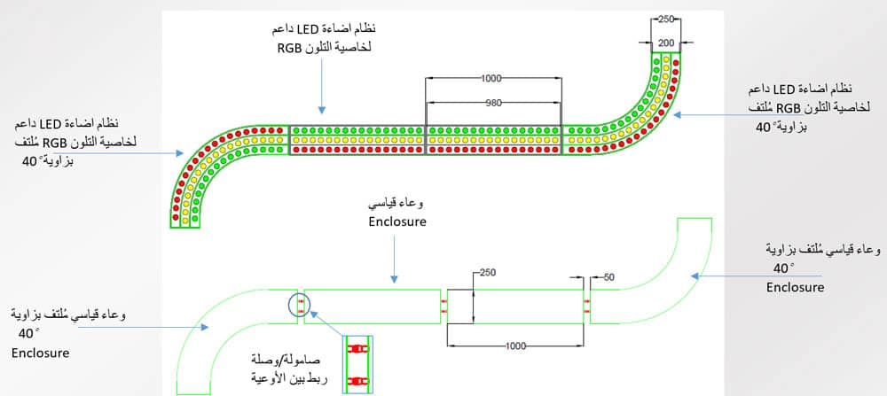 - ربط المسارات المزروعة بالإشارات المرورية كوظيفة تفاعلية مثل: توحيد لون المسار مع لون الاشارة (احمر-اصفر-اخضر) اثناء الوميض.