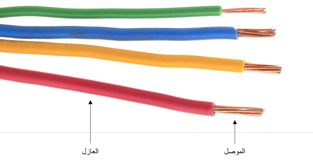 1- الموصل : مادة موصلة مثل النحاس ، الألمنيوم و الذهب